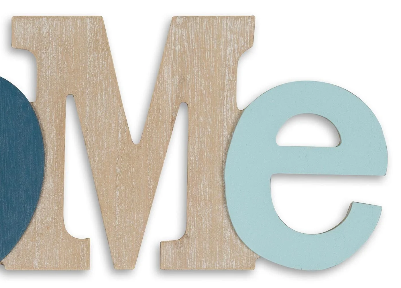 Der 3D-Schriftzug „Home“ bringt ein behagliches Wohngefühl in jeden Raum. Die doppelte Holzlage erzeugt einen plastischen 3D-Effekt, der moderne Wohnbereiche stilvoll ergänzt. Die Kombination aus Blau- und Naturtönen verleiht dem Schriftzug einen charmanten Shabby-Chic-Look.