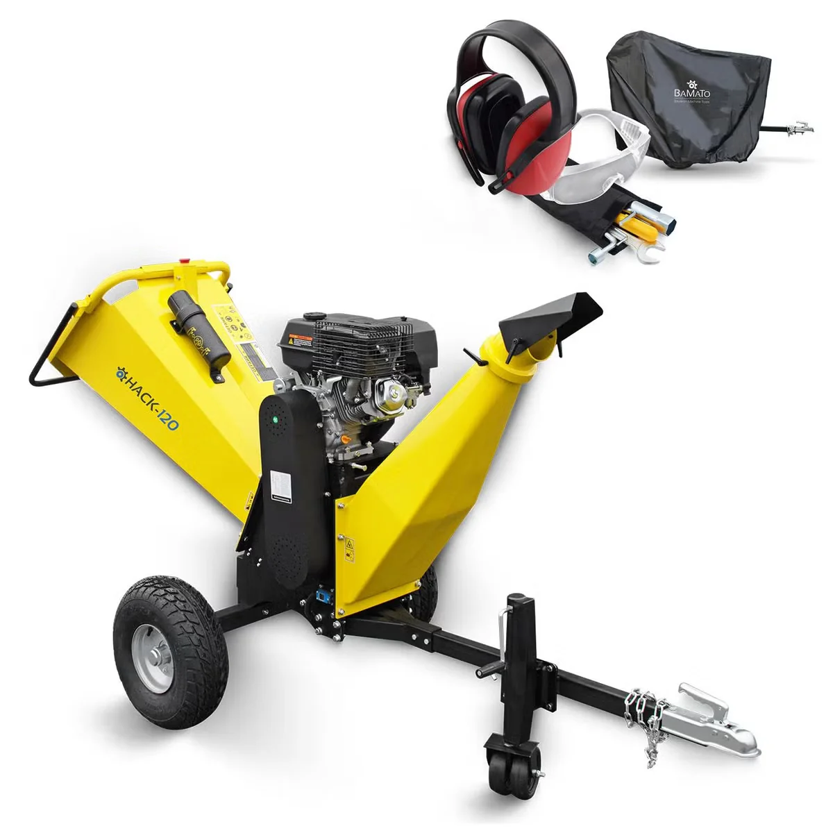 Produktinformationen "BAMATO HACK 120 Benzin Holzhäcksler 150 mm 9 kW mit Abdeckplane"