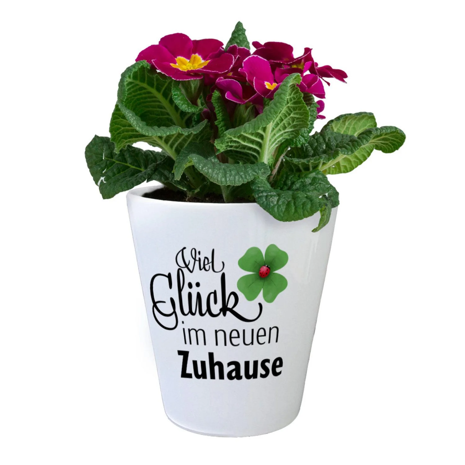 Keramik-Blumentopf • Glücksmotiv • Ideal als Einzugsgeschenk • Mit Ablaufloch