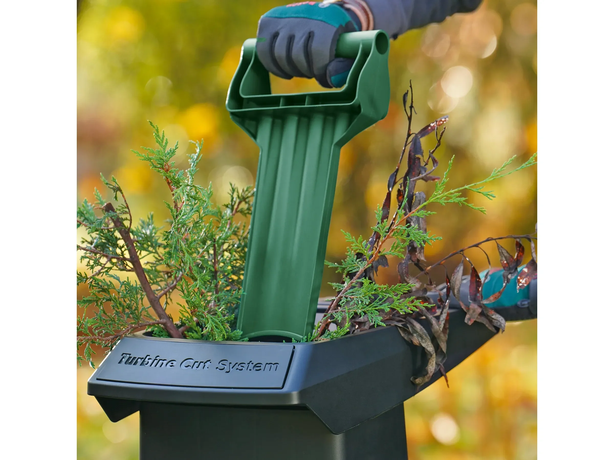 - Komfortabler Einfülltrichter – leicht zu bedienen; der mitgelieferte Stopfer erleichtert das Nachschieben von dornigem oder stacheligem Material.