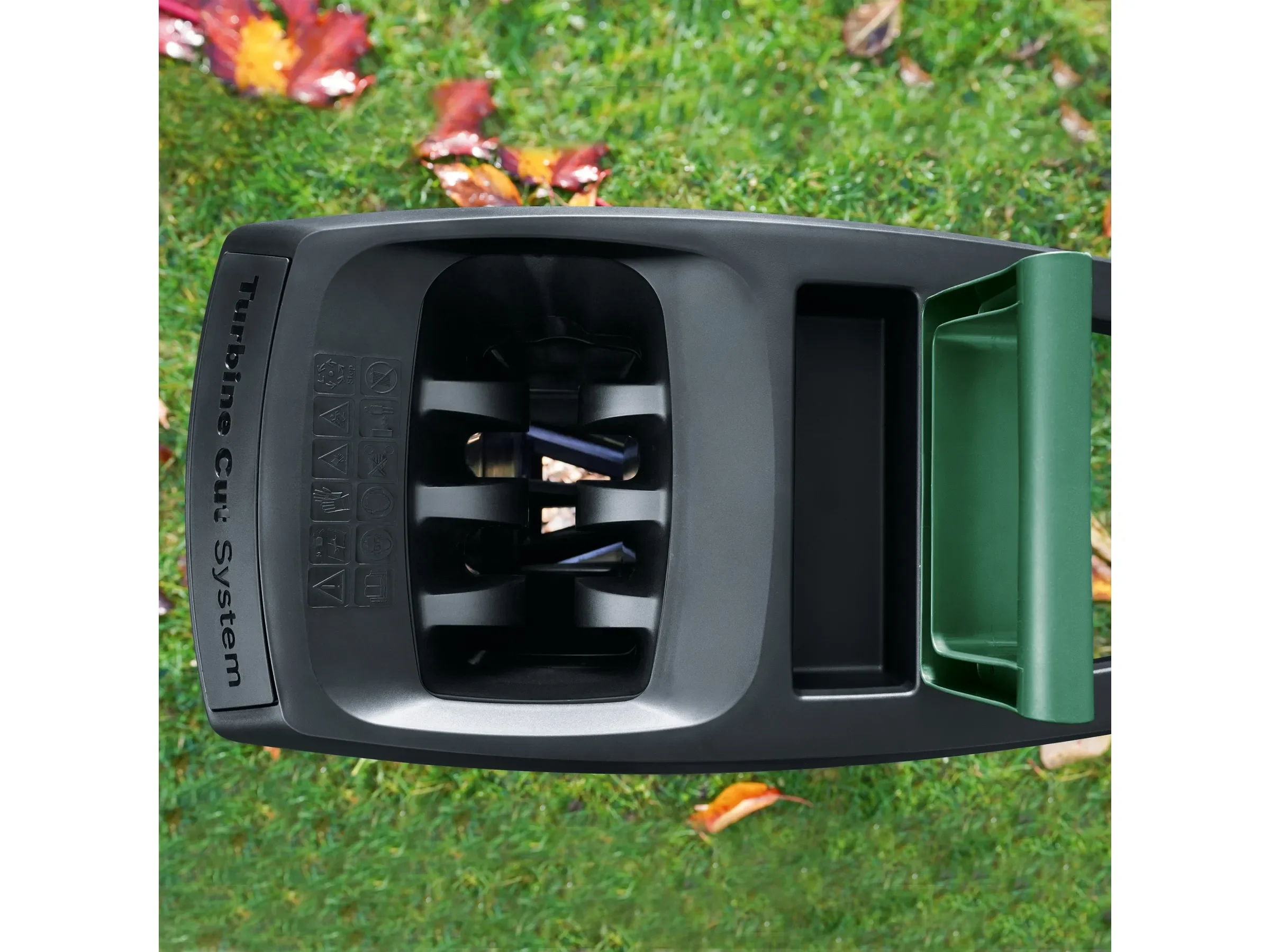- Hohe Anwendersicherheit – Sicherheitsverriegelung stoppt die Turbine, wenn die Fangbox nicht korrekt eingesetzt ist; abgeschirmtes Schneidwerk.