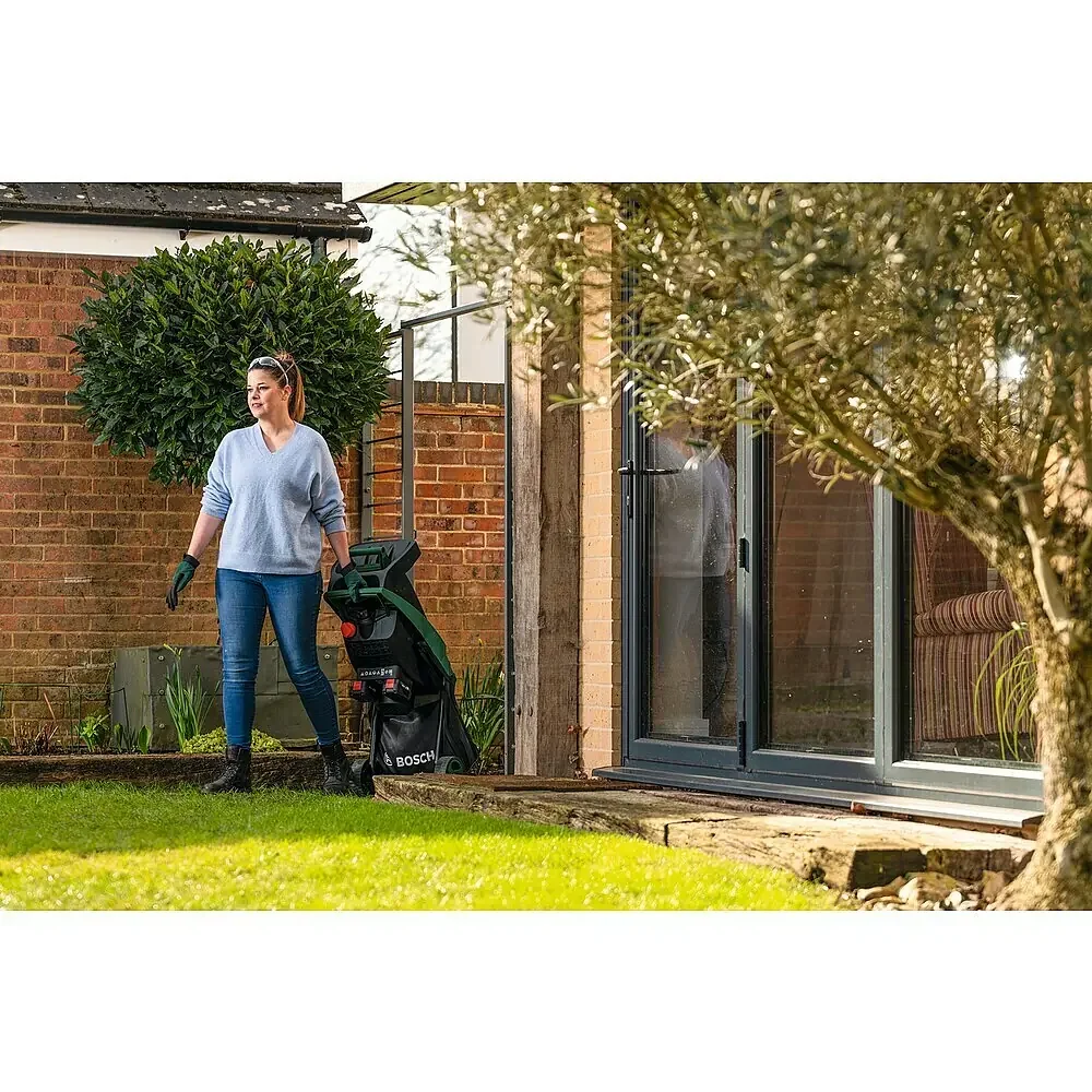 - Gehärtete Stahlmesser – sorgen für zuverlässige Schnittleistung und saubere Ergebnisse bei Gartenabfällen.