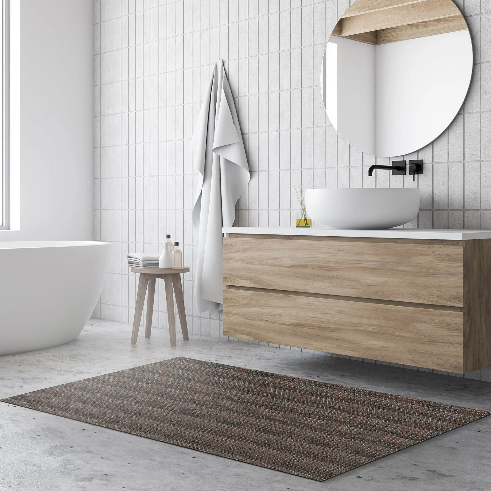 Robuster, schnelltrocknender Badteppich mit rutschfester Rückseite und antibakterieller Oberfläche. Ideal als kompakter Duschvorleger oder Badematte – pflegeleicht, flach und langlebig.