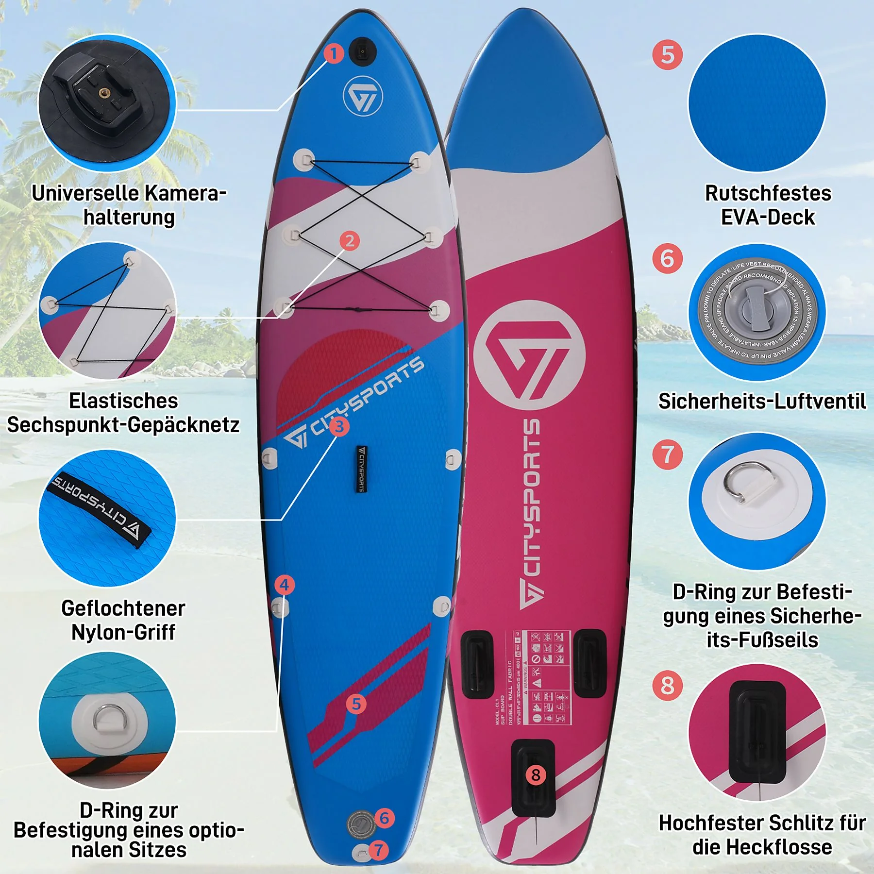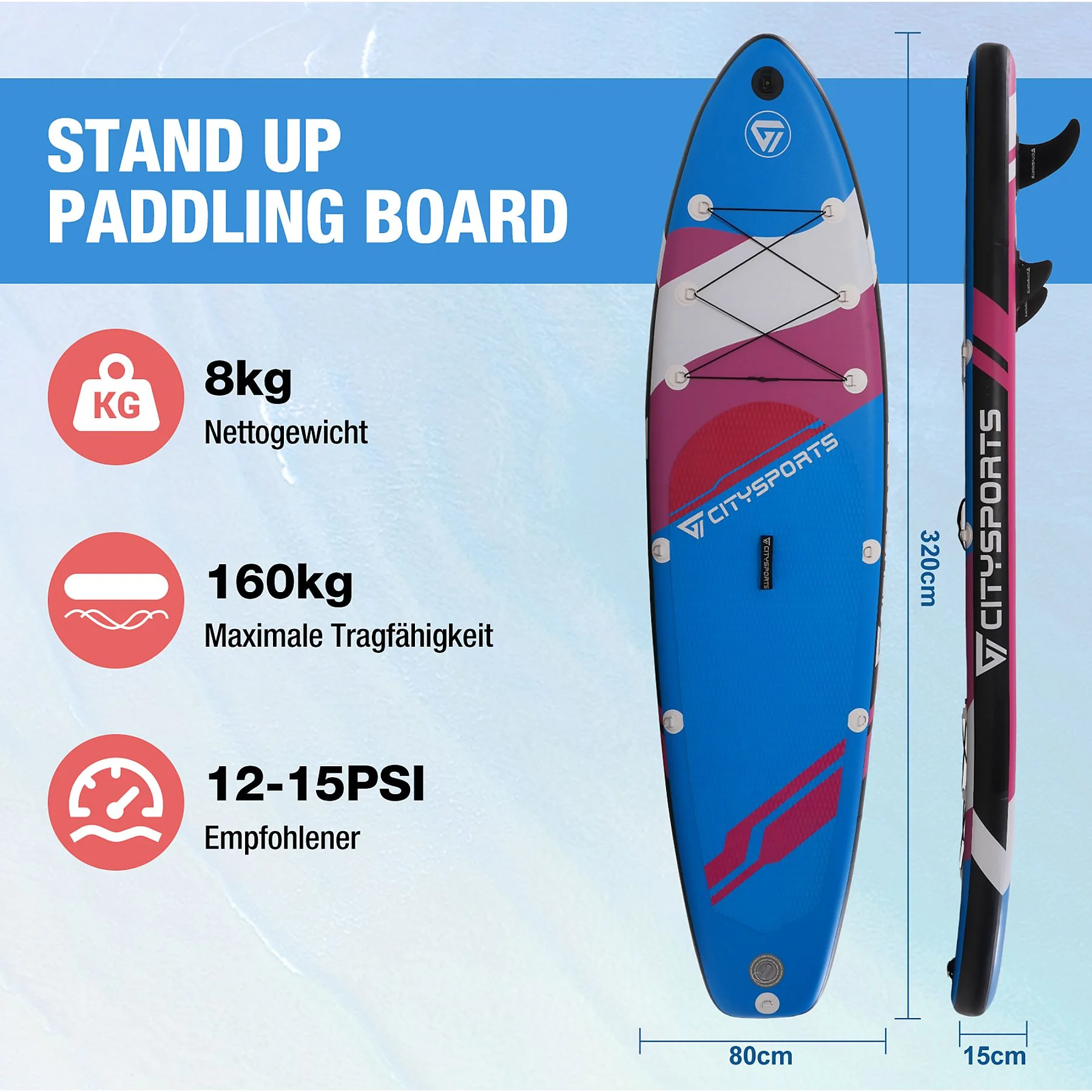 Produktinformationen "CITYSPORTS CL1 Stand Up Paddle mit komplettem Zubehör Rosa"