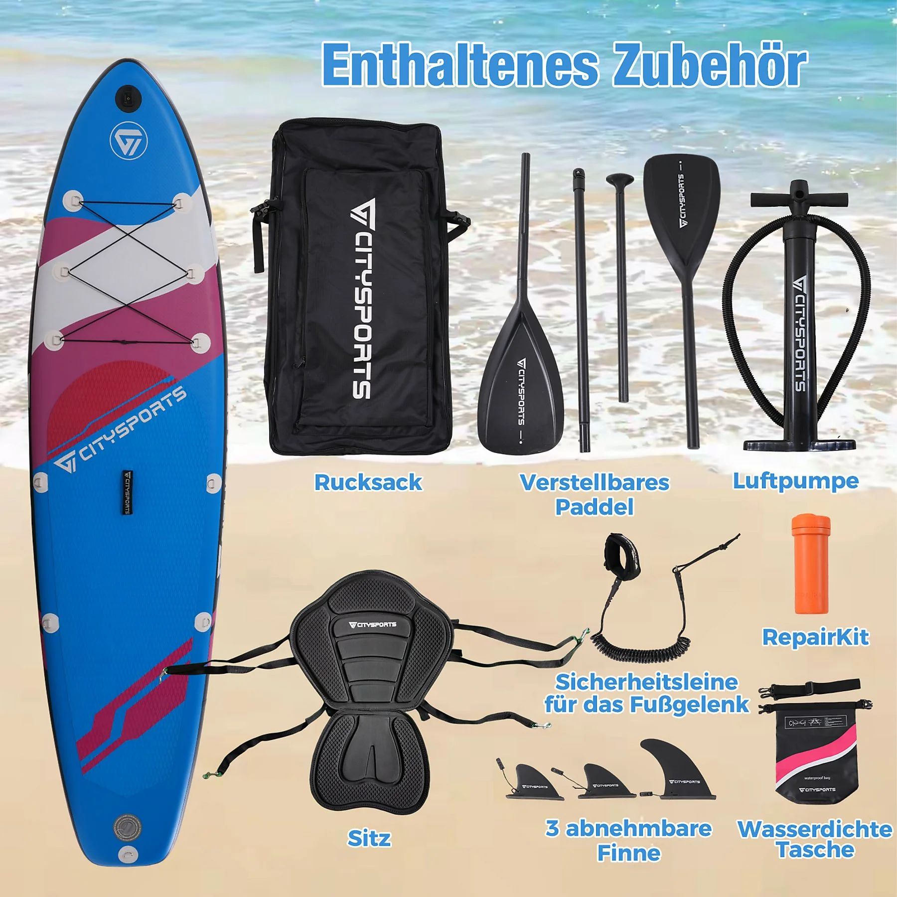 CITYSPORTS CL1 Stand Up Paddle mit komplettem Zubehör Rosa