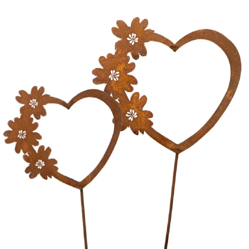 DRAGIMEX Gartenstecker • Herz mit Blumen • 38 cm • Metall Rostoptik