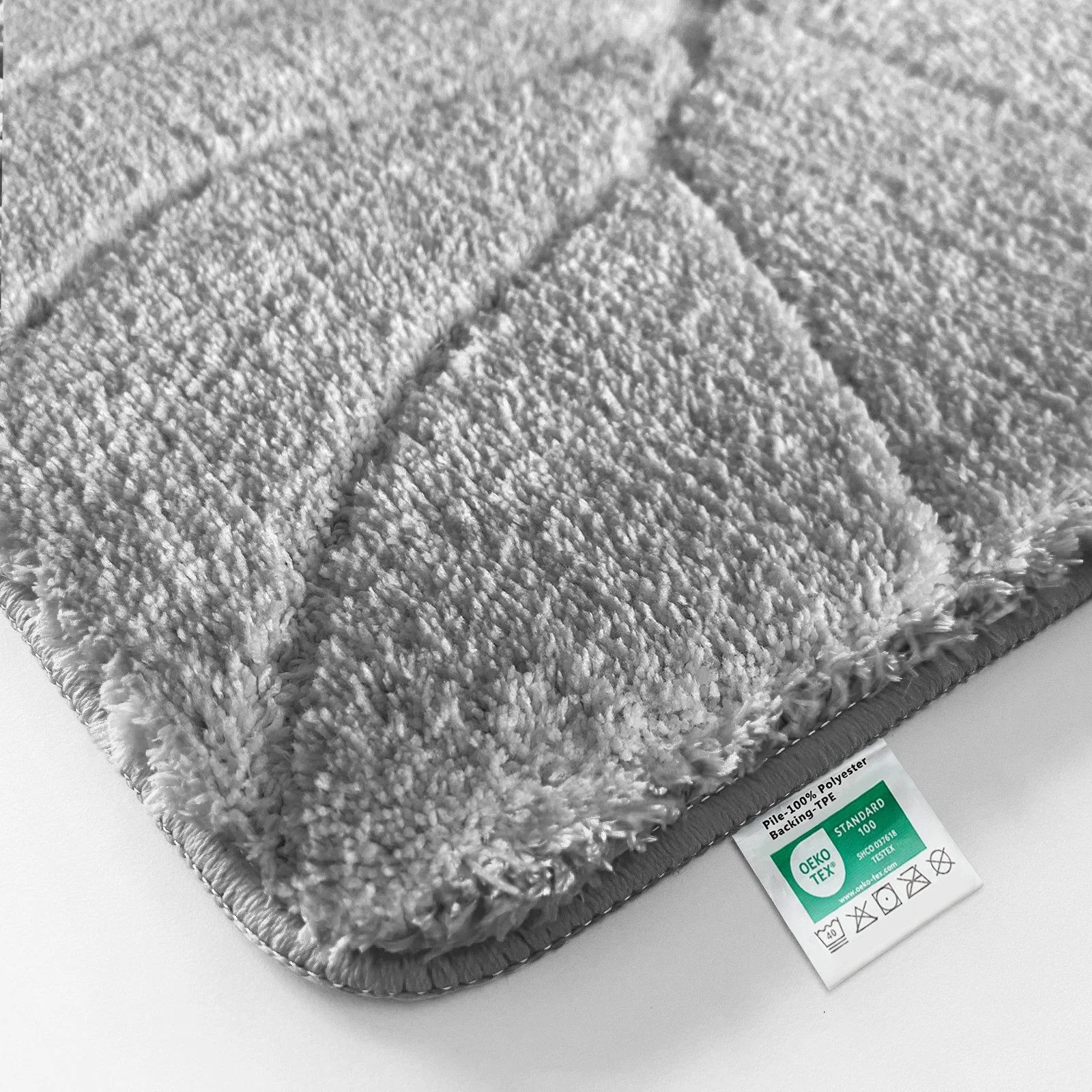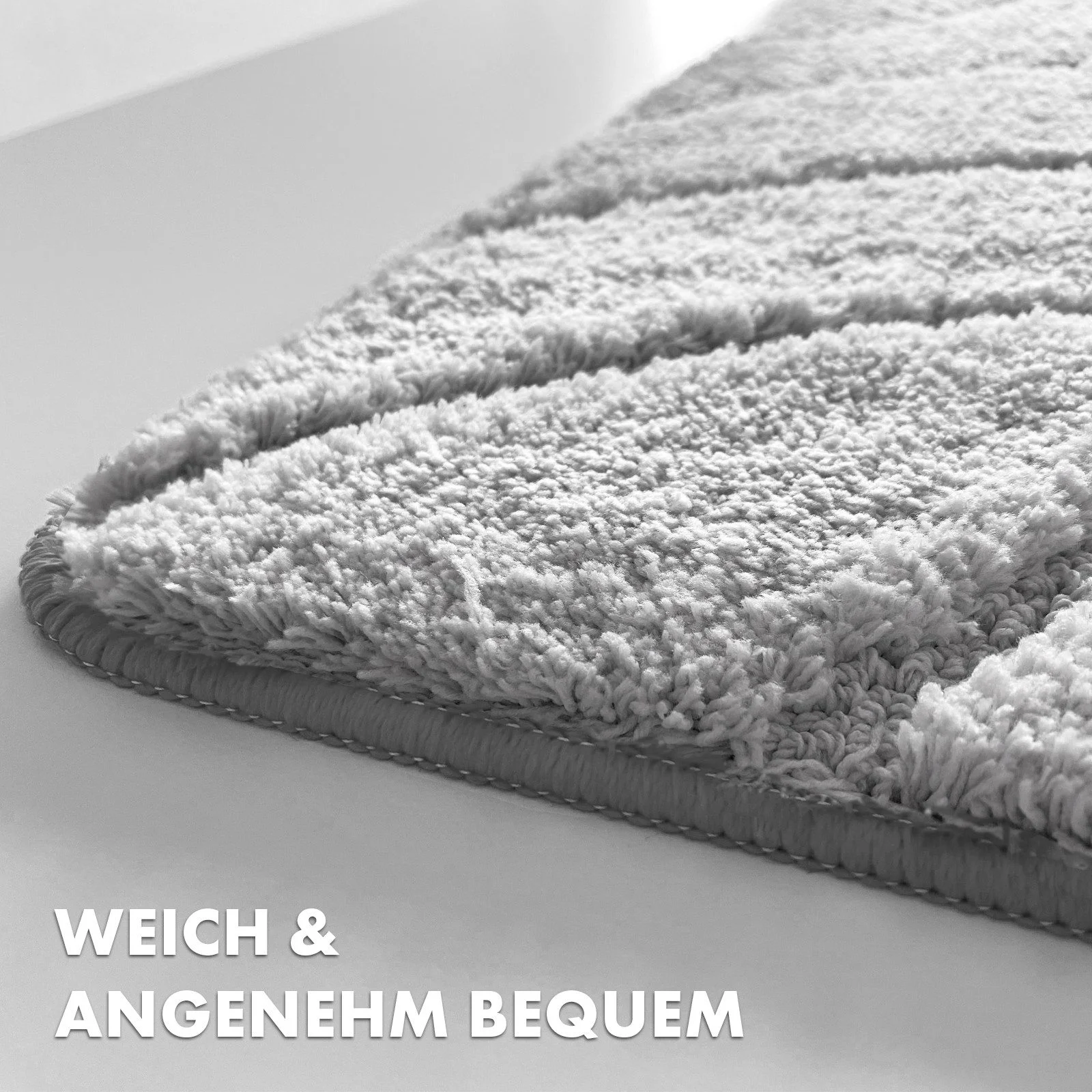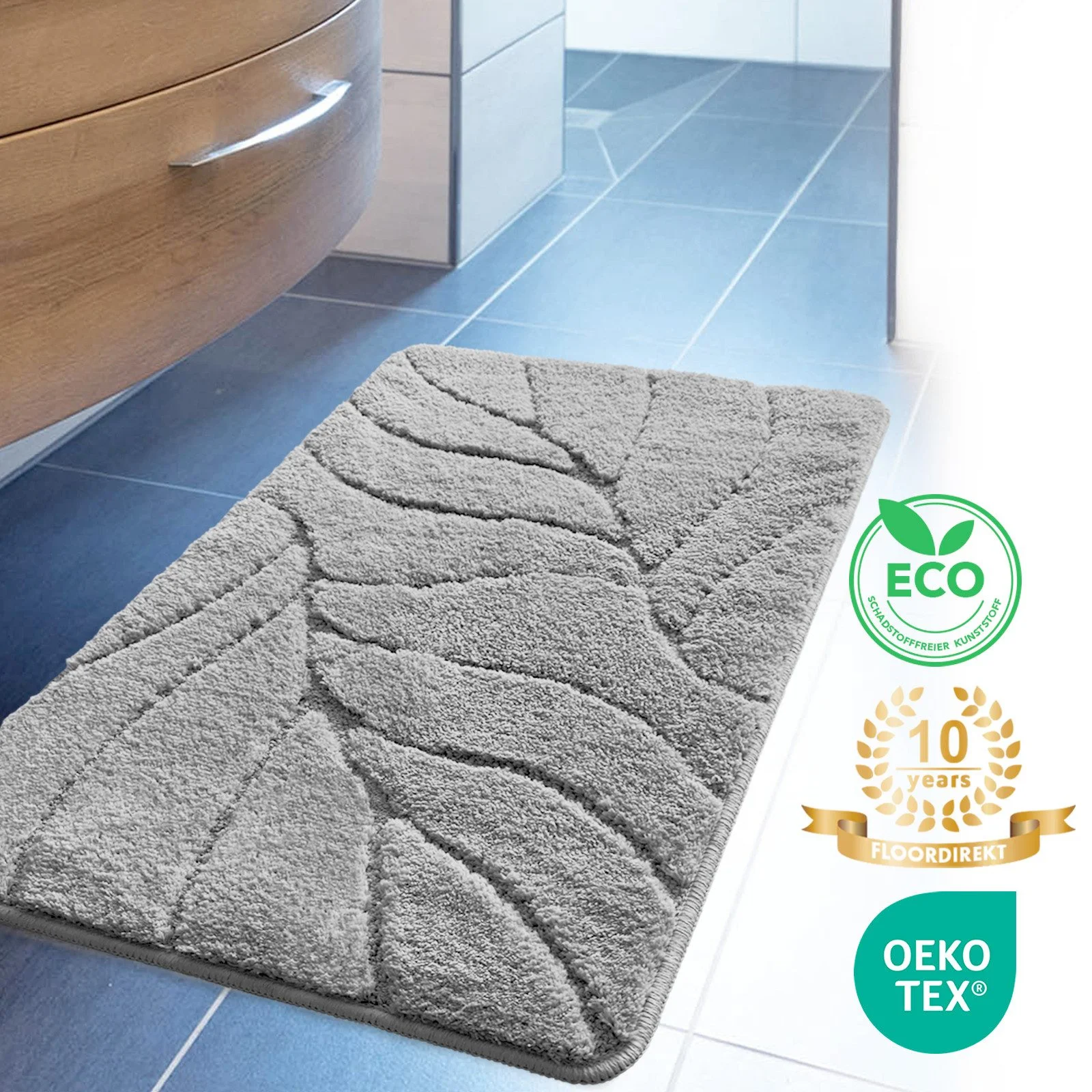 Flauschiger Badvorleger mit eleganter Blattstruktur, weicher Mikrofaser-Oberfläche und rutschfester Rückseite. Pflegeleicht, langlebig und geeignet für Fußbodenheizungen.