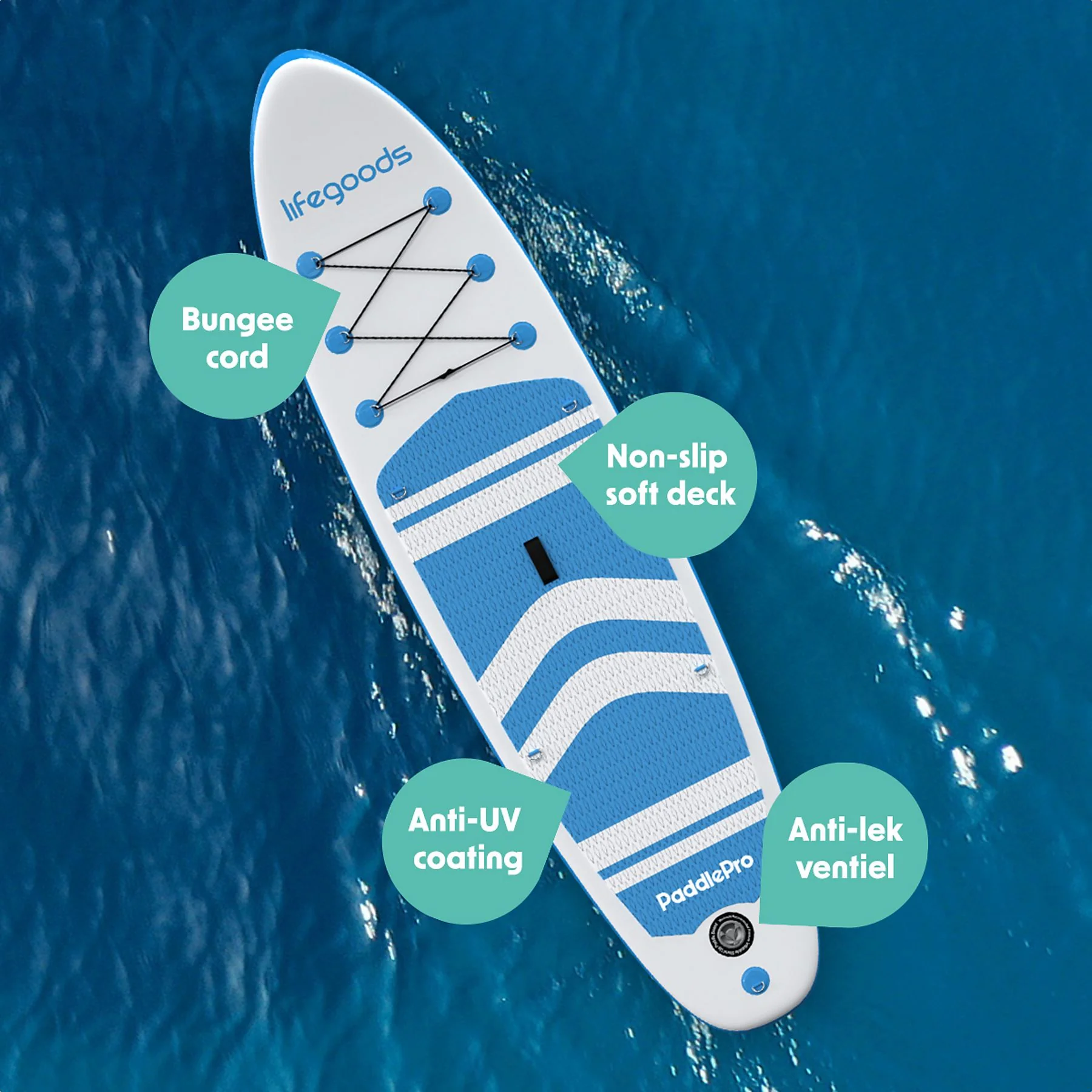 Produktinformationen "LIFEGOODS LG1377 PaddlePro Allround SUP Board wit lichtblauw"