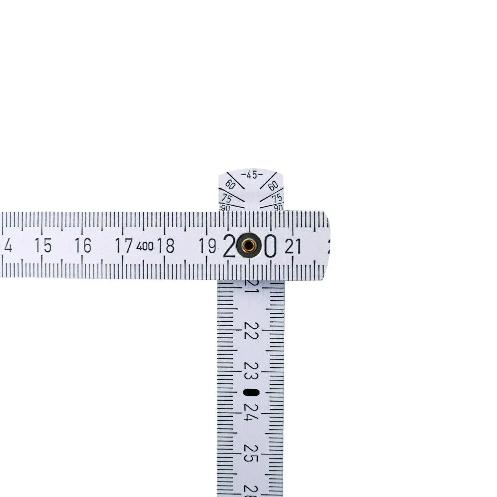 Der 2-Meter-Gliedermaßstab bietet eine exakte 90° Rasterung sowie eine innenliegende Winkelmessung für 45°, 60°, 75° und 90°. Robuste Halbmond-Endkappen sorgen zusätzlich für Stabilität und lange Haltbarkeit. Gefertigt in Deutschland – nach professionellem Standard für präzises Arbeiten und langjährige Nutzung.
